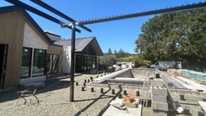After relocating HVAC units to the upper rooftop tier, the transformation began. The crews laid down Zip System® board followed by a waterproof membrane. Adding to the insulation and drainage strategy, large rigid foam (Styrofoam) panels were precisely cut and placed over the Zip board layer.