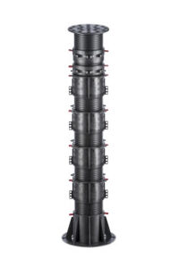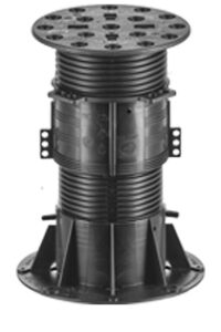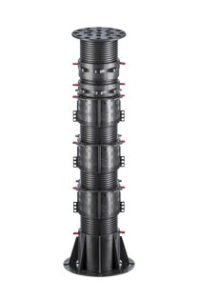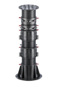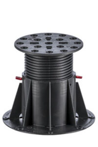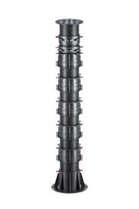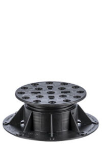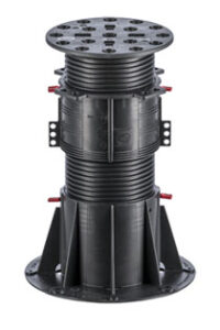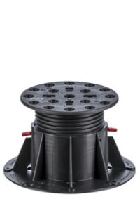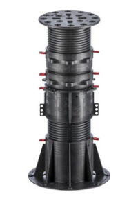 Buzon BC Series pedestals provide designers with endless creative possibilities. Independently 360° rotating spacer tabs line up non-dimensional materials perfectly. Locking keys stop rotation in either direction, fixing the pedestal at a specific height. These features make the BC Series a favorite for water features and raised industrial flooring applications. The BC family of pedestals has an adjustable height range of 1 1/8″ – 44 1/2″ (28-1130 mm) with optional slope correction. Fixed height pedestals (BC-0 and BC-1) and U-PADS are available to support a range from 3 to 28 mm. If your project requires fire-rated, self-extinguishing pedestals consider the Bfl-s1 Rated BC-FR pedestal.