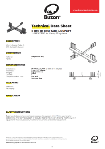 - System Components: E-BRS joists (24 mm / 38 mm), PB-Series pedestals, PB-KIT-2, 3×25 mm screws, and Wind Uplift accessories.